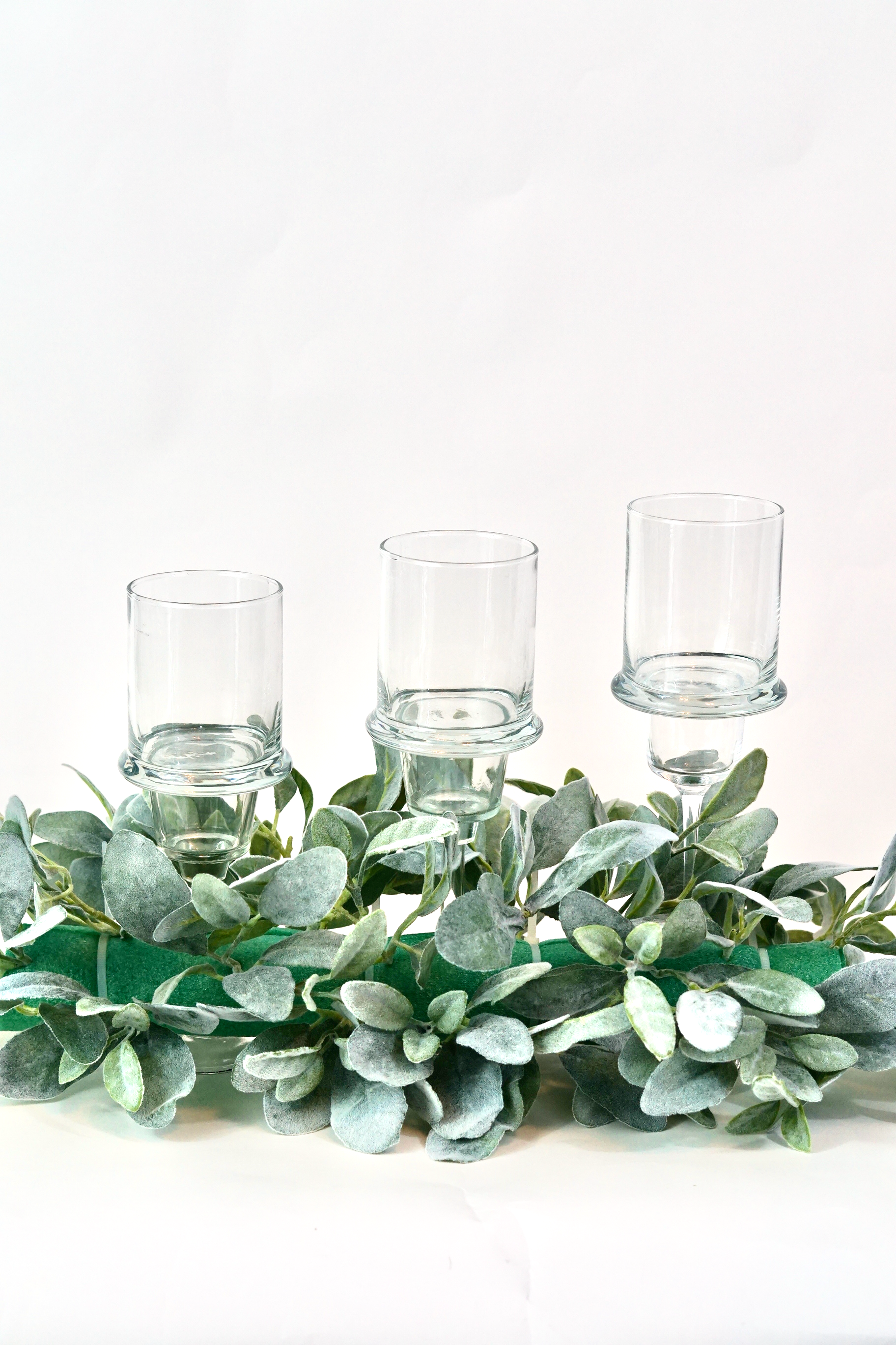 You can create these candle pedestal with 2 Dollar Tree finds. Using E6000 attach 1 Long Stem Glass Tea light Candle Holder to the bottom of a Rock Glass Candleholder. Allow 30-45 minutes to dry.